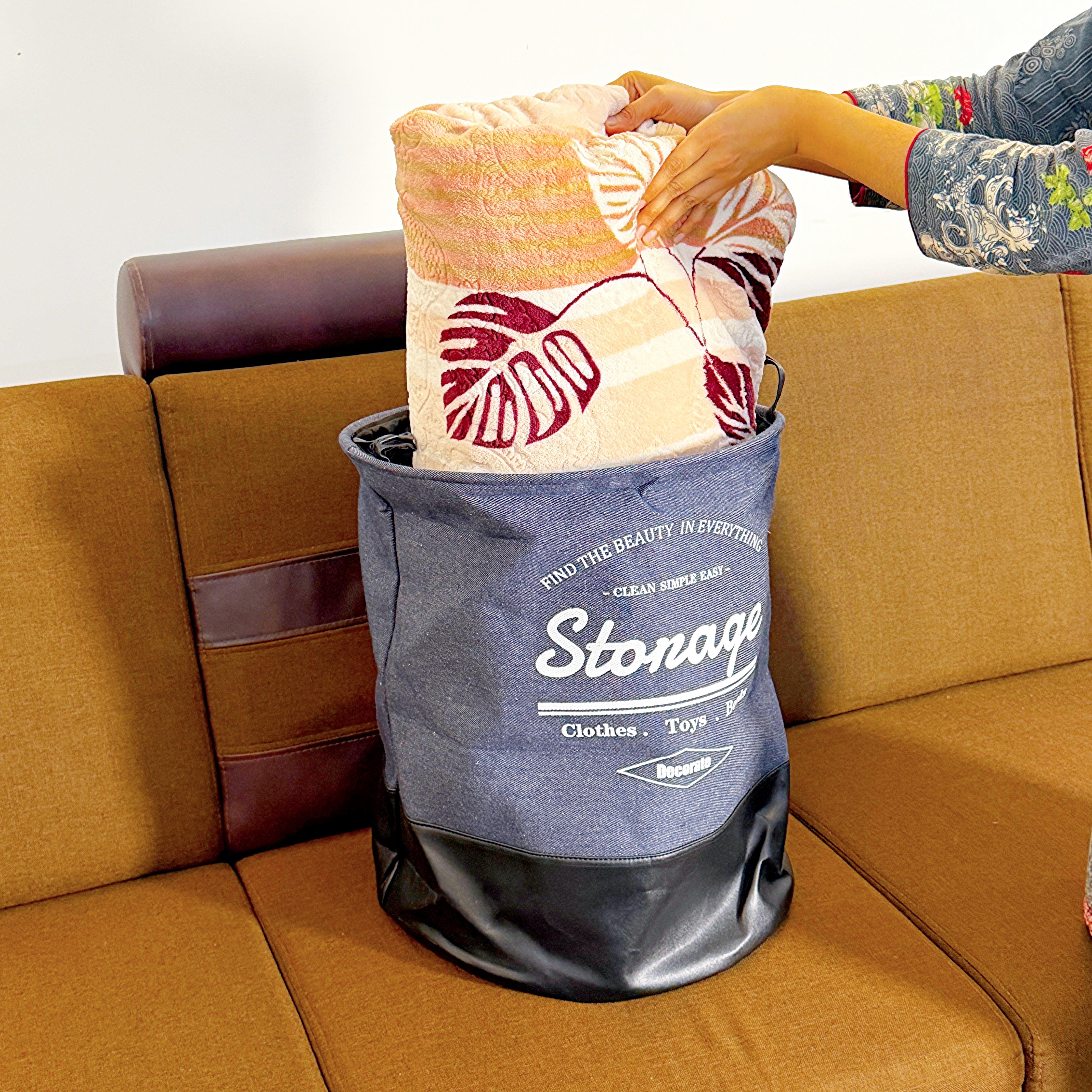 • Multipurpose Premium Denim Foldable Storage Basket with Handles